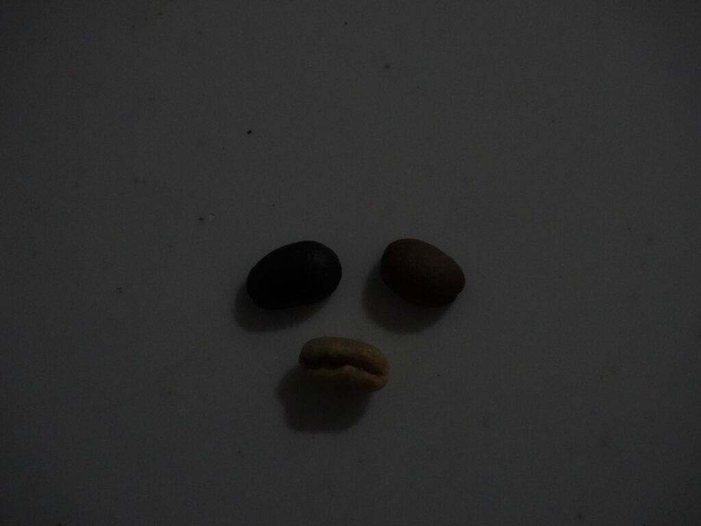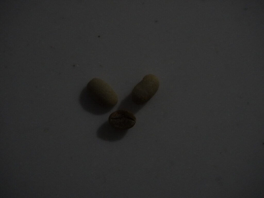 はじかれていた欠点豆と、焙煎中にこぼれ落ちたお豆を使って、飼育員、遊んでました。