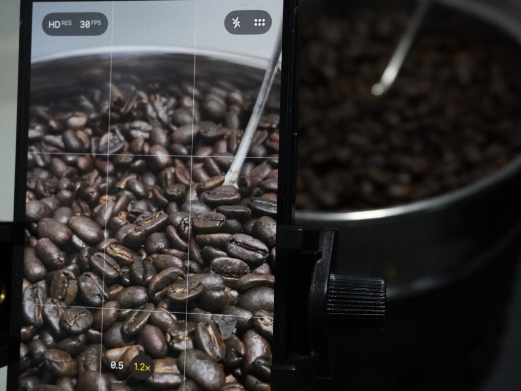 この焙煎の前に別のお豆を焙煎していたのですが、撮影の待ちの間が暇で、しょーもないことを始めてしまいました。