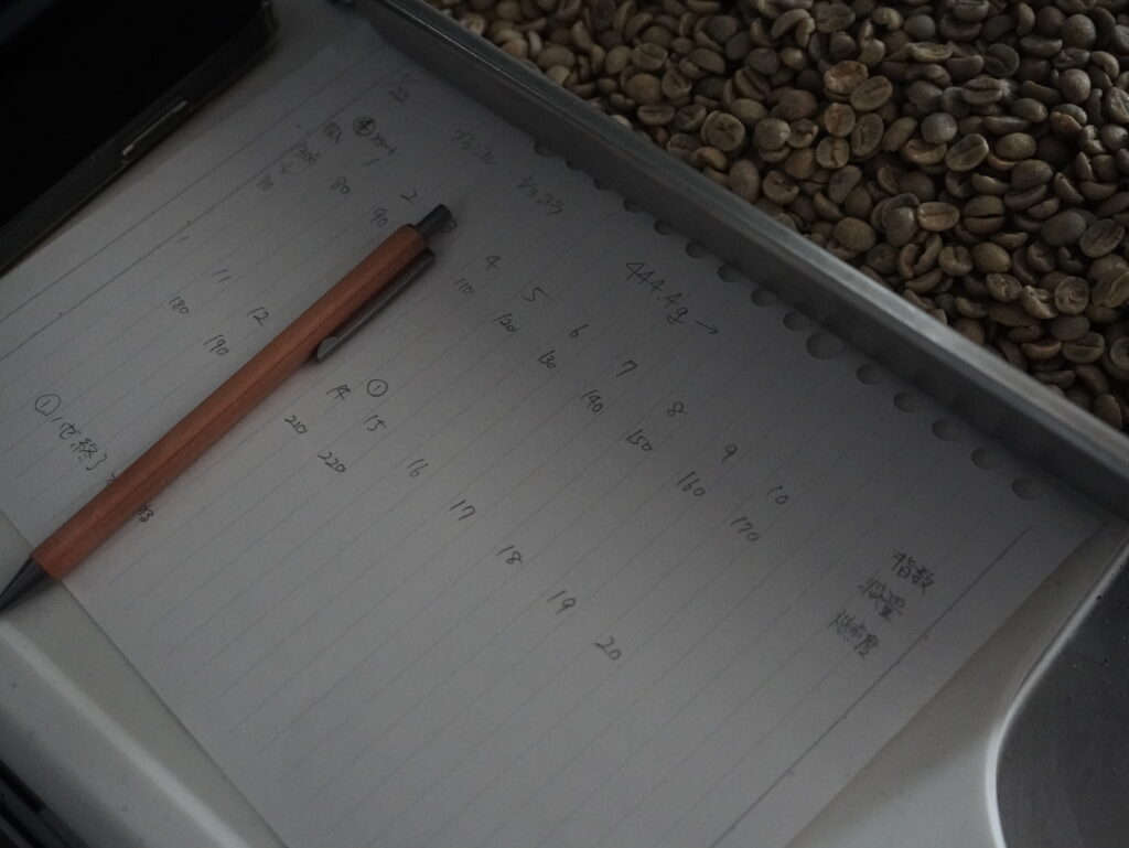 前回の焙煎データをもとに、焙煎計画を練るこぶた。
