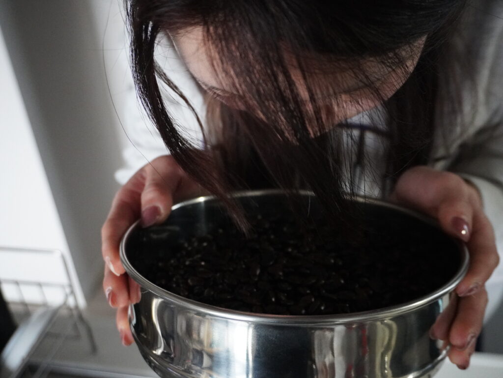 窯から出した時の色からして、明らかに深煎りの色をしていて、焙煎指数や減量率を見ても水分がすごく抜けていて、完全に焼きすぎちゃいました😢