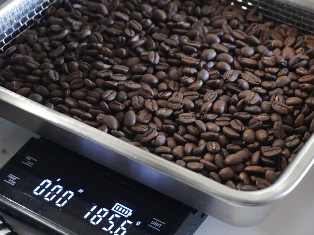 焙煎後 185.6g (−34.4g 減量率15.6%)