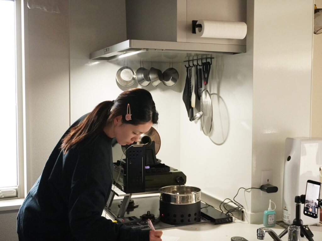 飼育員は、Instagram用の動画を携帯で撮影しながら、ブログ用の写真を撮るという動きに少し予余裕が出てきました。焙煎の工程が分かってきたことと、どんな映像や写真が撮りたいかイメージできてきたからか。(クオリティは上がってないですけどねすいません🙇‍♂️)