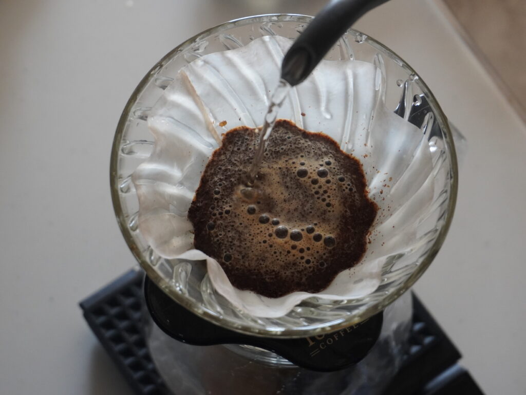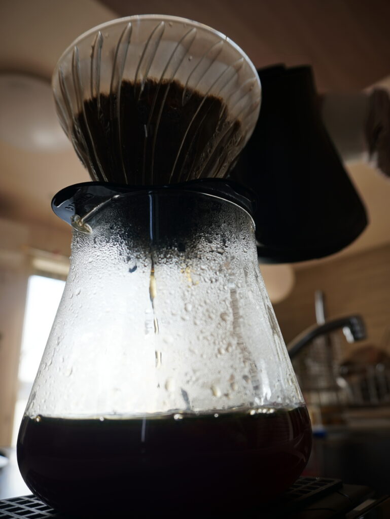あと、狙いというかドリップに関してやったことは、浅煎り系はいくら焙煎したてでもコーヒードームが出来にくい印象がありますので、ドリップ時にお湯で撹拌するように意識して注ぎました。