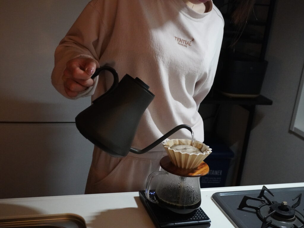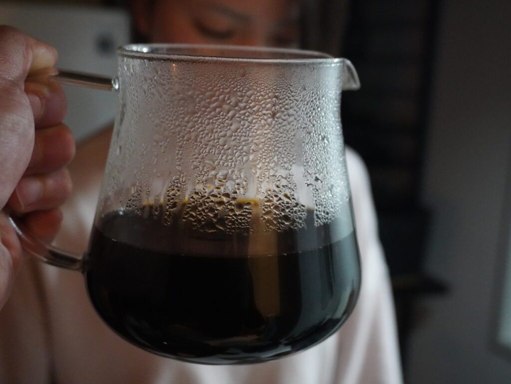 今回は粉が多めなので、ORIGAMIドリッパーとフィルターで抽出を早くして雑味が出ないようにすること(あっさり抽出)と、でもしっかりボディも感じたいから抽出時間を3分間にする(どっしり抽出)という、矛盾のドリップをしました😅