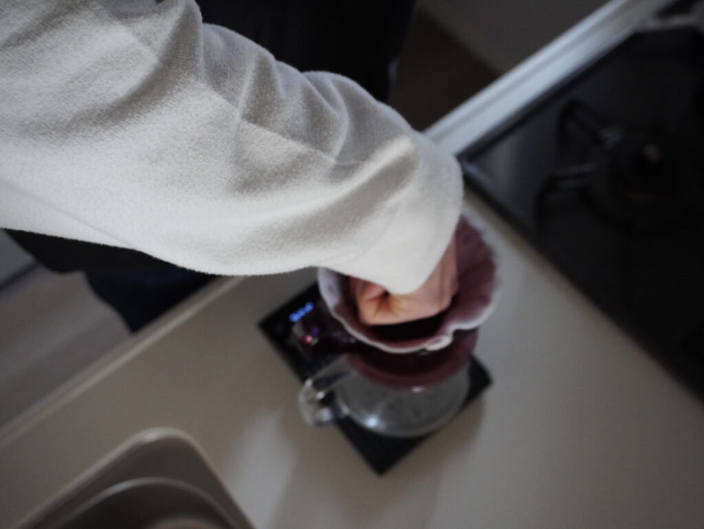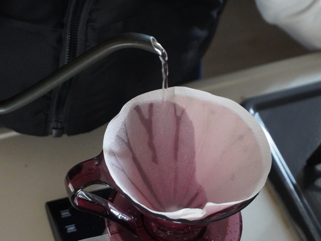 紙臭さを消すため、ドリッパーにフィルターを密着させるため、とか、他にも様々な理由が挙げられていますが、楽しくコーヒーを抽出できればいいと思うので、私はあまりこだわっていません。