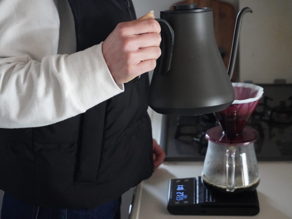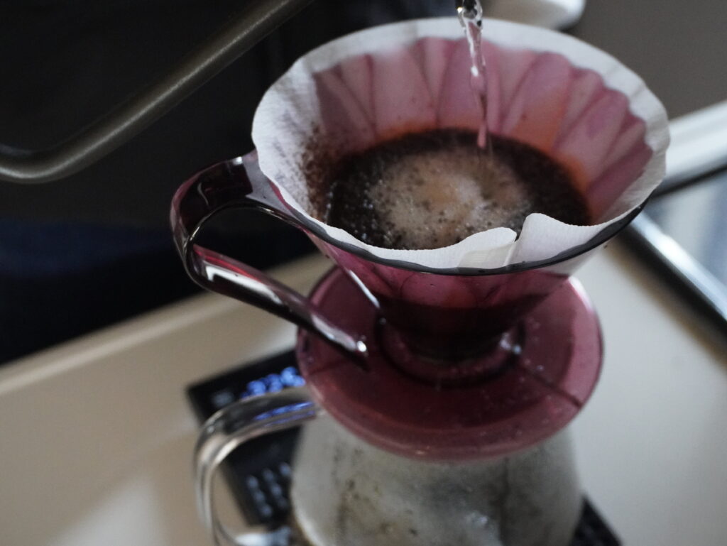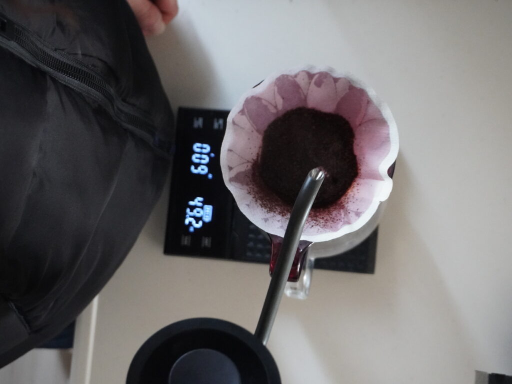今回のドリップは4投に分けてお湯を注いでみました。