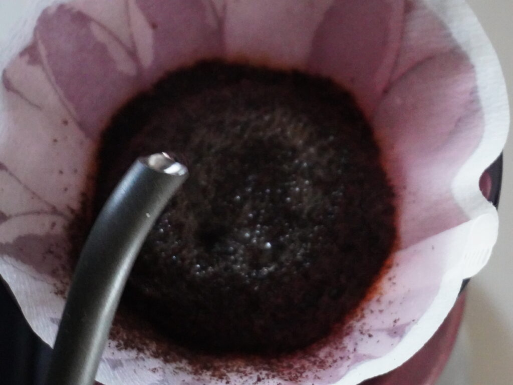 ロブスタ種であろうと疑いの晴れない私は、中挽き、お湯を多めで注いでみることに。