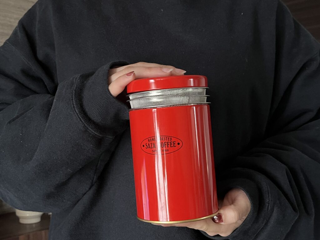 お好みサイズに挽いたコーヒー粉を入れて、缶の蓋をしっかり閉めてからシェイク‼️