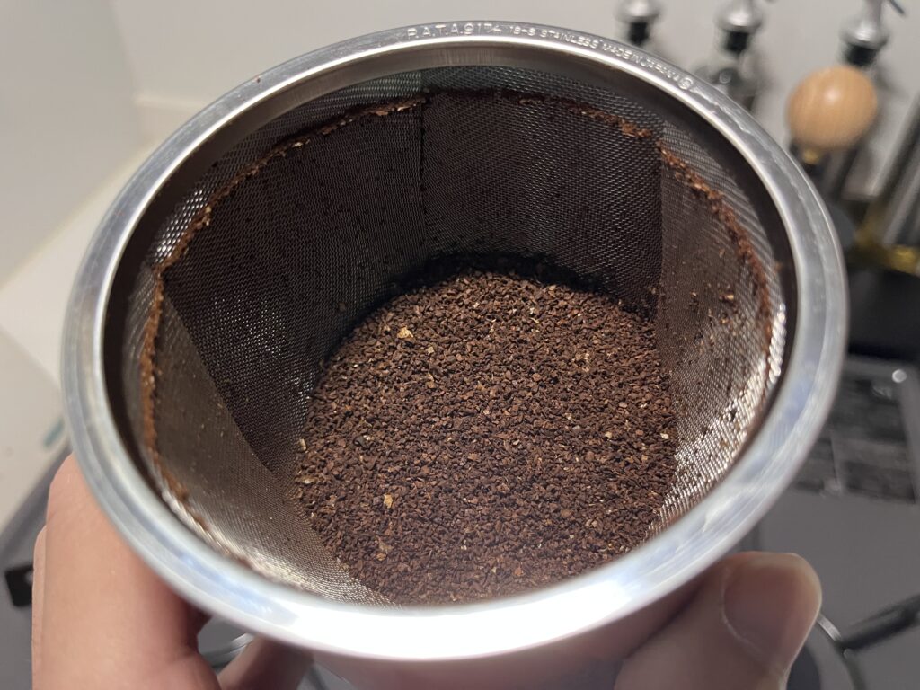 フレンチプレスとステンレスフィルターの2つともを試してみたのですが、どちらも微粉を気にすることなく飲めました!