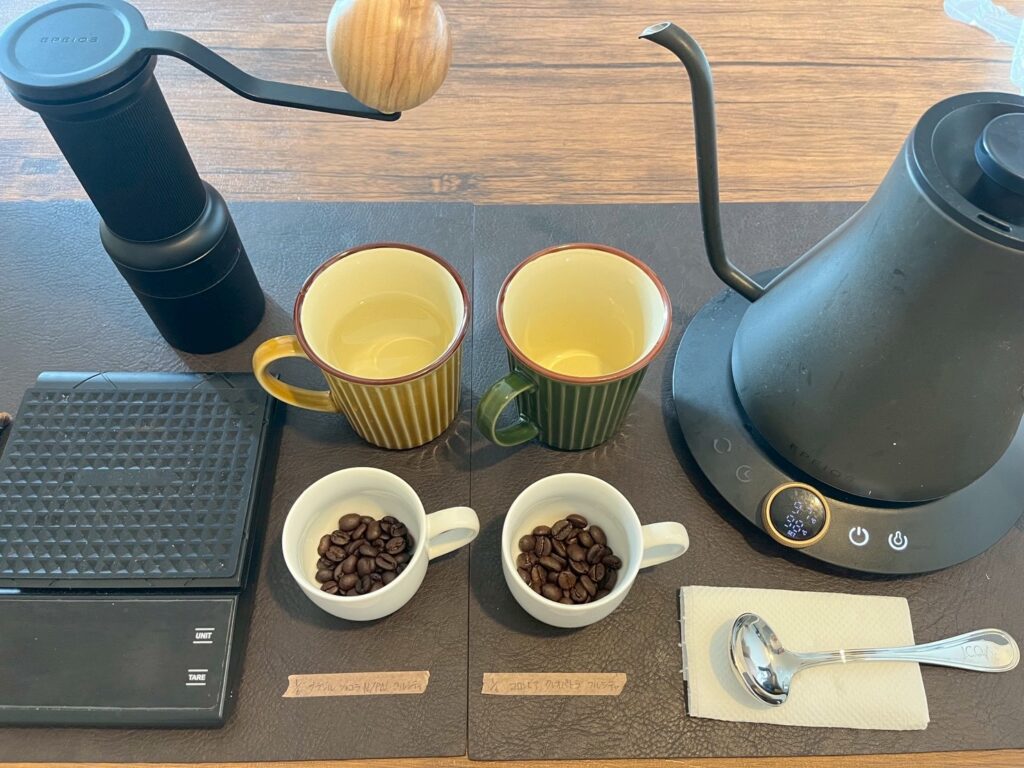 焙煎してから数日が経過し、味が落ち着いてきたことと、どちらもフルシティロースト(中深煎り)なので味や香りの比較もしやすいかと思い選びました!