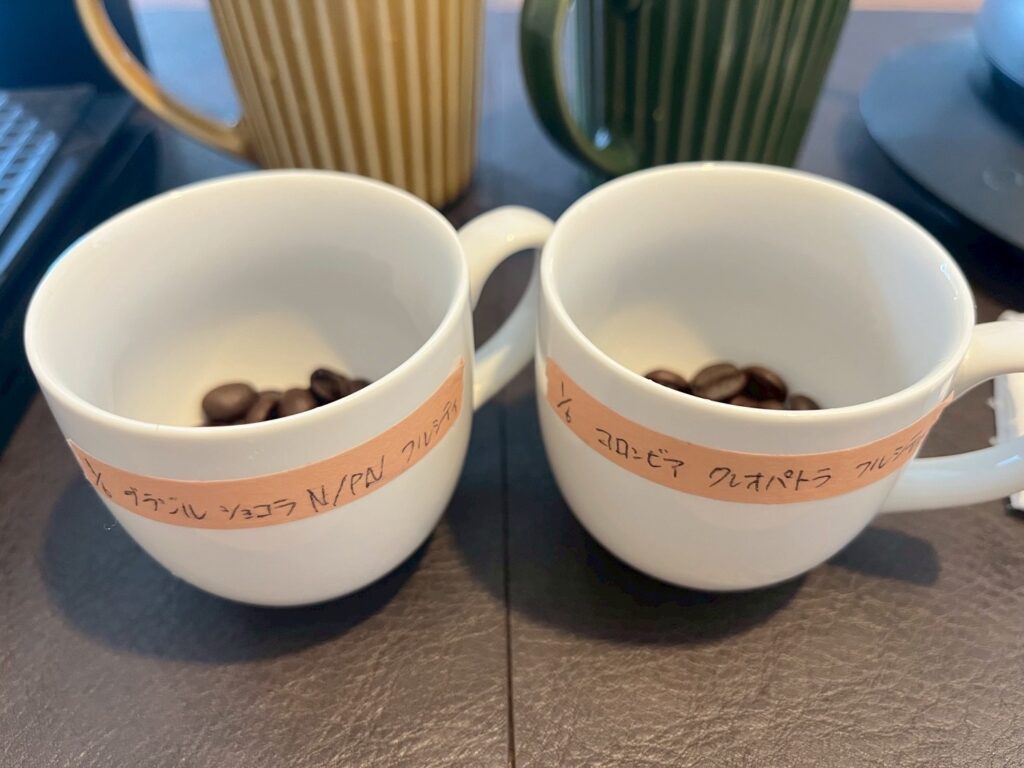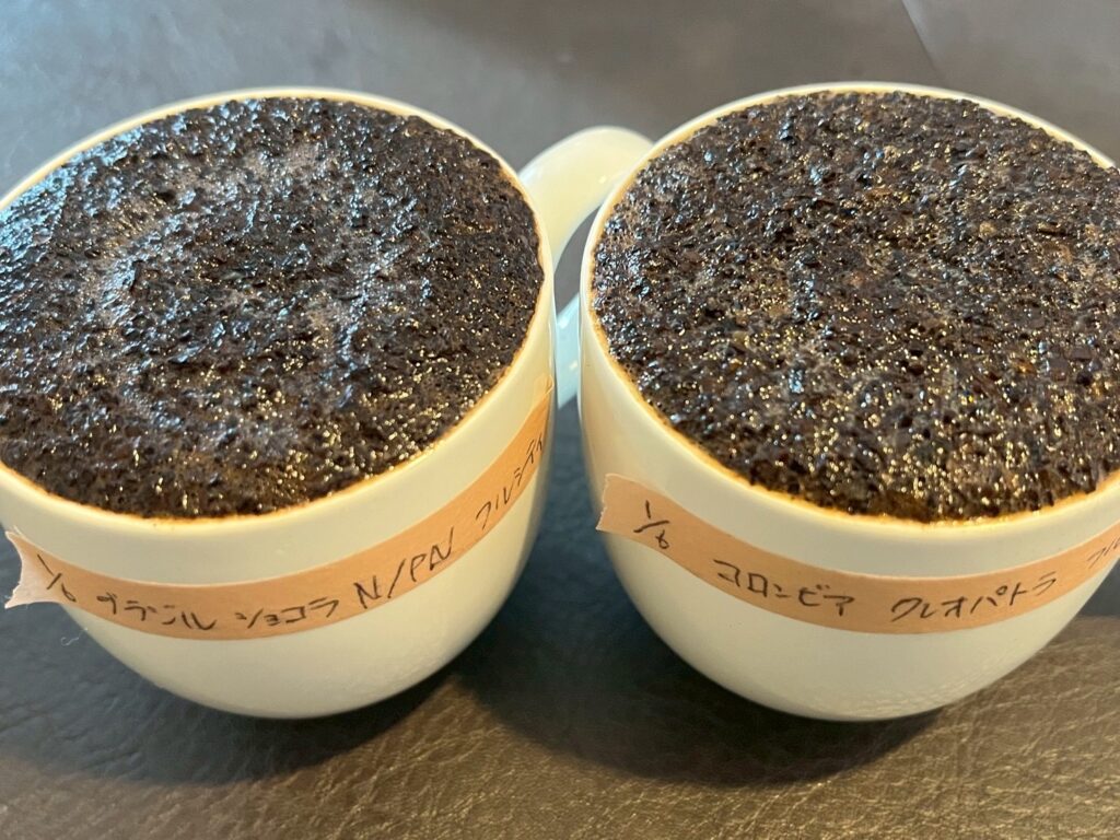 カッピングしたお豆は、1月6日(2026年初焙煎)に焙煎した【ブラジル🇧🇷ショコラN/PN(フルシティロースト)】と【コロンビア🇨🇴クレオパトラ(フルシティロースト)】の2種類です!