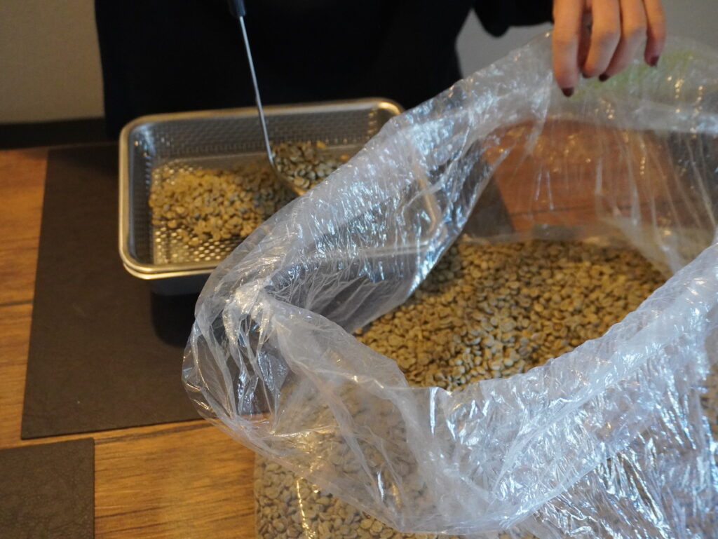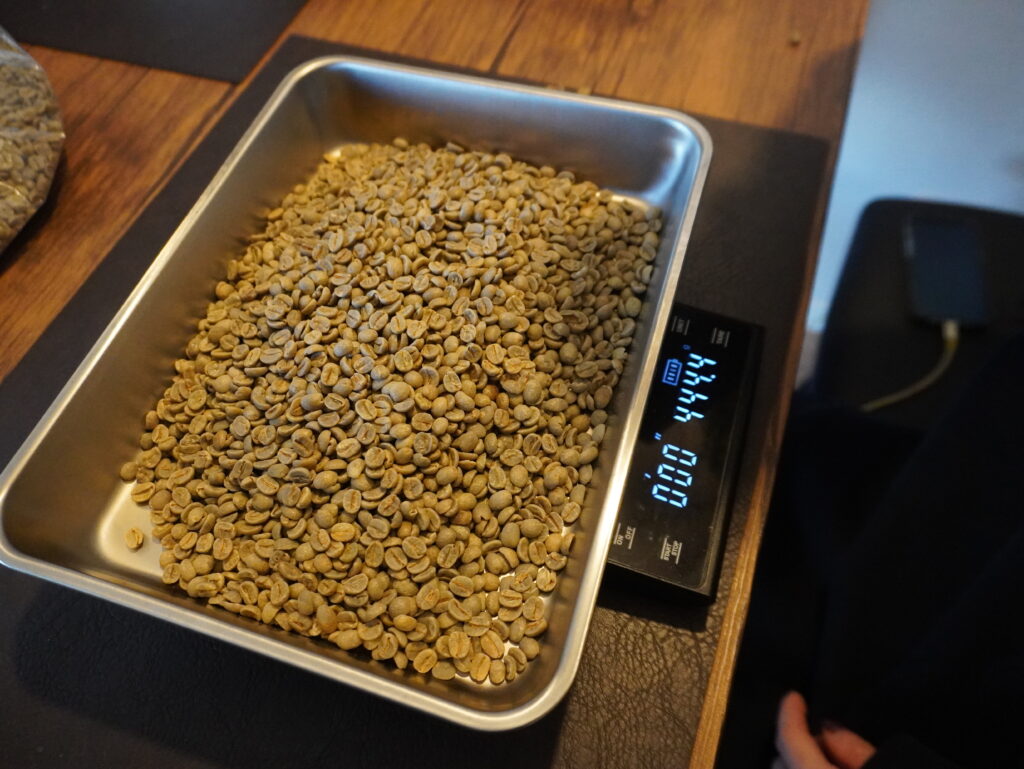 ハンドピック後の生豆の重量が、焙煎後の重量との比較に必要なので、軽量の必要があるのです。