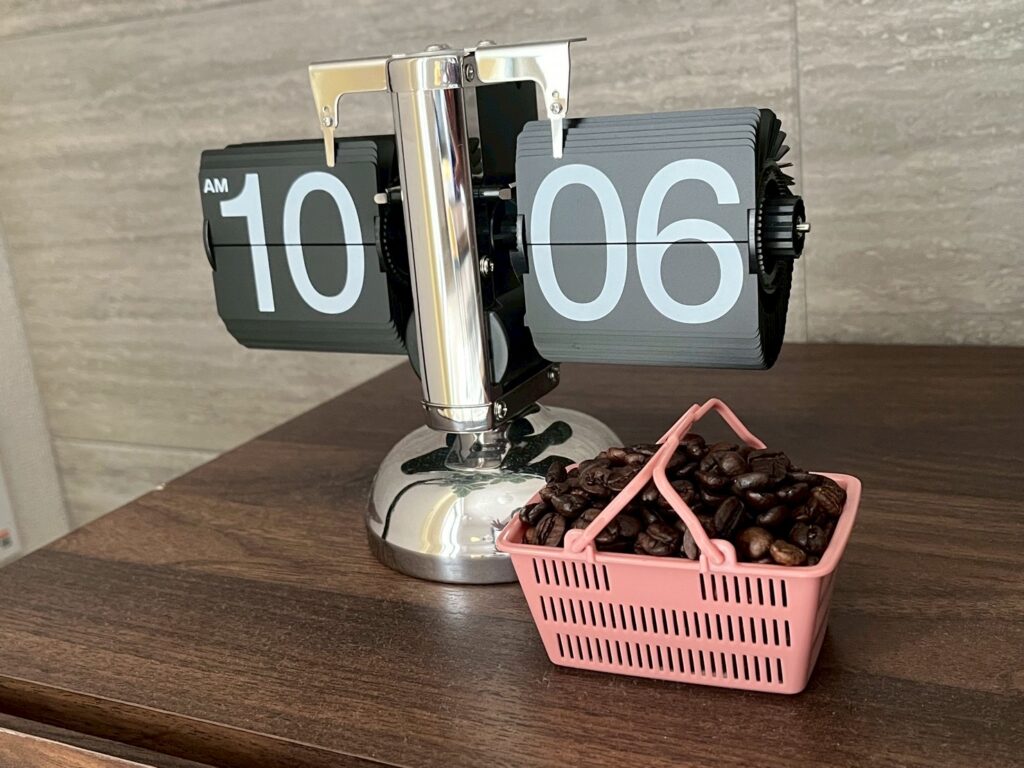 seriaさんに小さい買い物カゴが売っていたので、コーヒー豆を入れてみました。